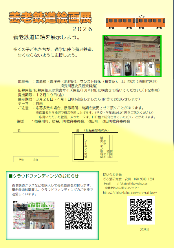 養老鉄道絵画展の実施にあわせてクラウドファンディングを実施します。